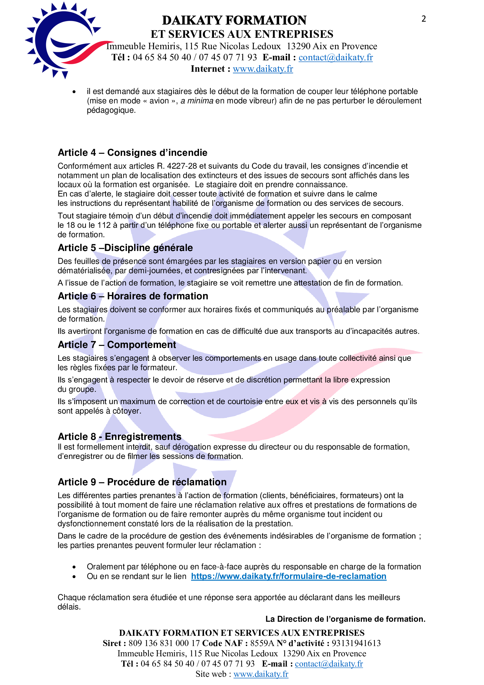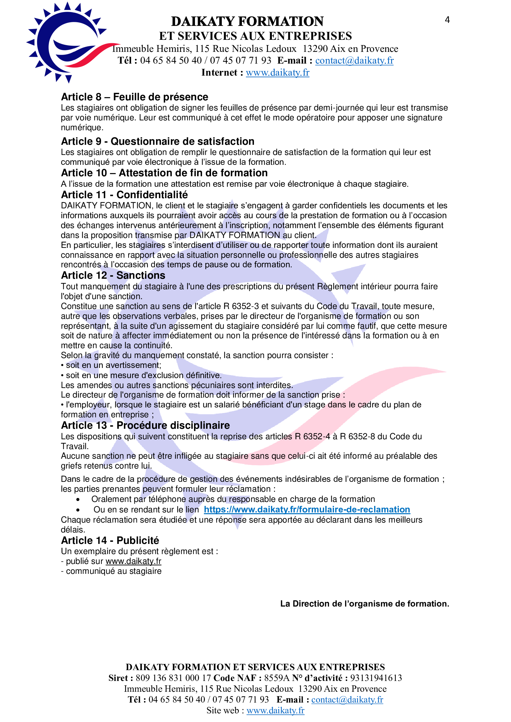 DAIKATY FORMATION s'engage à vous répondre sous 03 heures.*